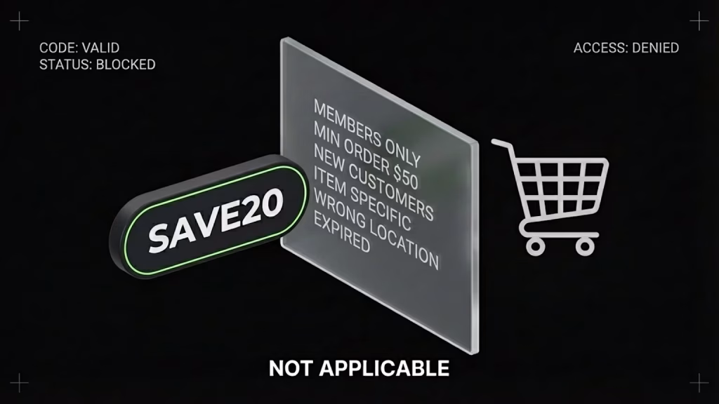 What happens: The system checks your entire cart. If there’s even one item that doesn’t qualify, it rejects the whole code.